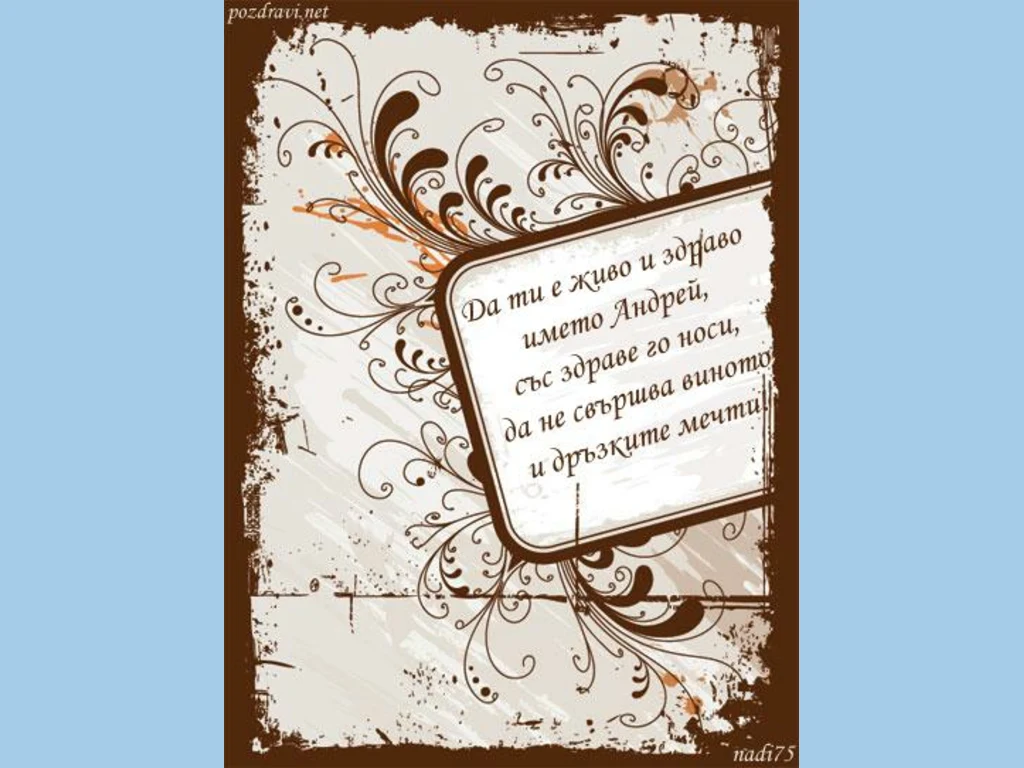 Ключови фрази: Картичка пожелание Андрей поздрави мечти празнуват Андрей Андриан Андреа Андриана Първан Пръвка Първанка Храбър Храбрин Силен Силка Дешо Дешка
