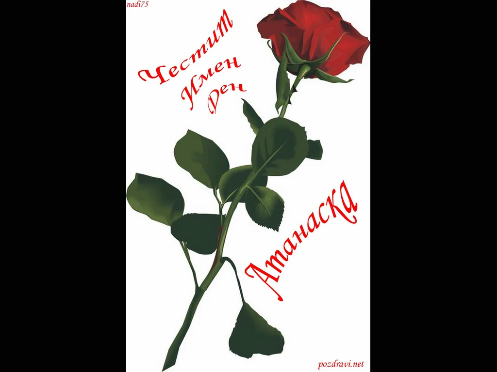Ключови фрази: Картичка алено червена роза поздрави честит имен ден Атанаска пожелание здраве любов красота щастливи дни късмет добри приятели