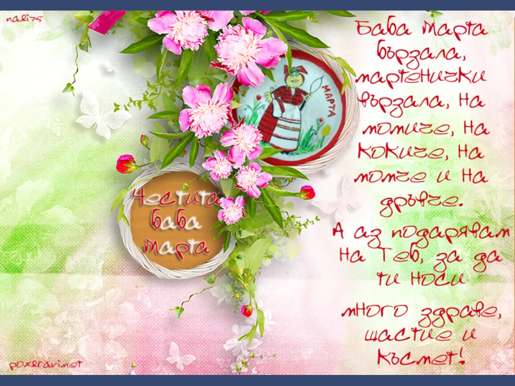 Ключови фрази: розови божури Баба Марта пожелание стих пролет