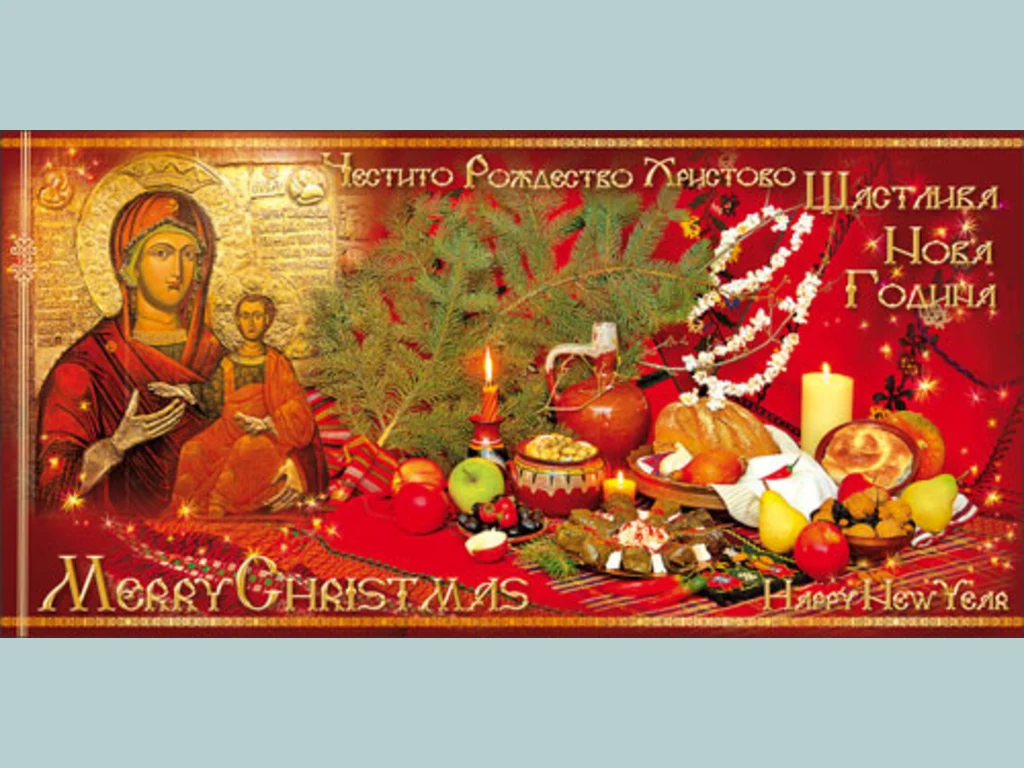 Ключови фрази: Картичка Бог Исус звезда икона дева Мария младенец богата украсена трапеза горяща свещ седем девет единадесет гозби