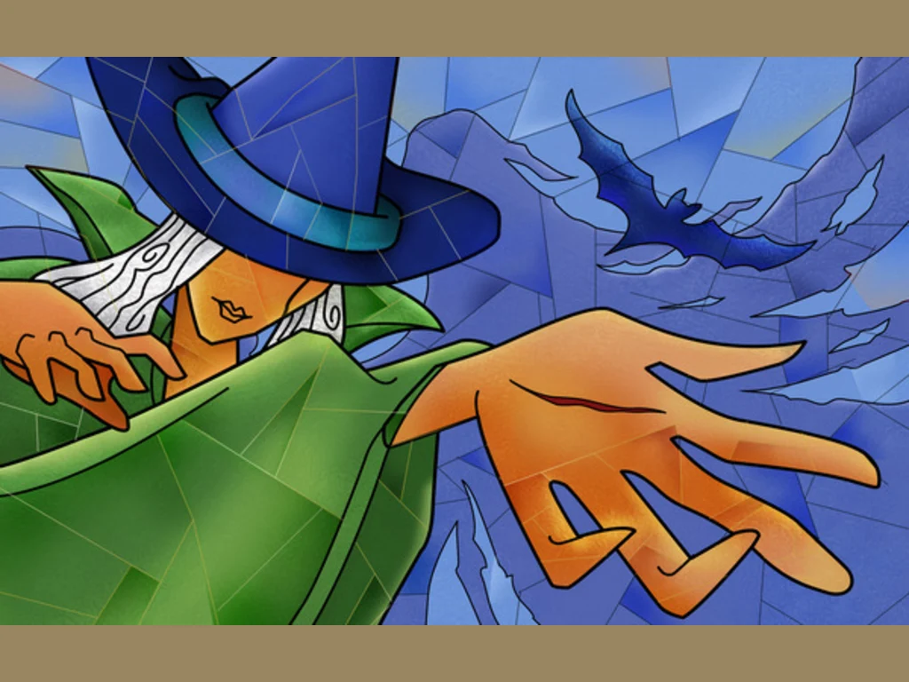 Ключови фрази: Картичка вещица магьосница прилепи чудовища вампири шапка невидимка бонбони