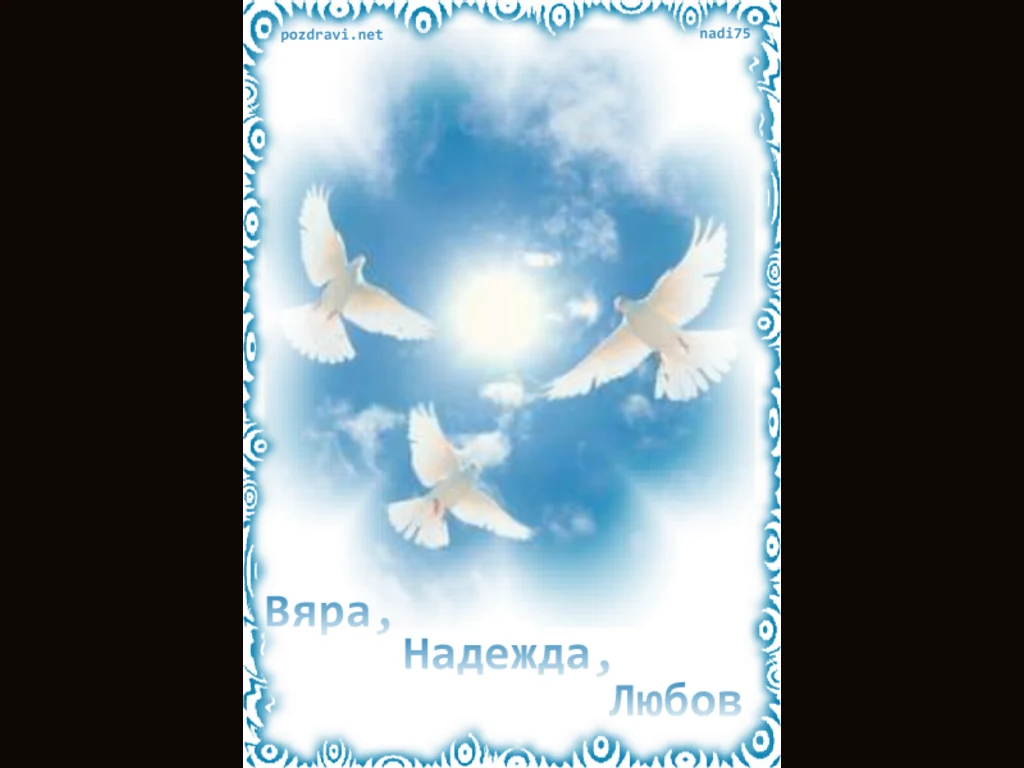 Ключови фрази: Картичка поздрави гълъби небе 17 септември Вяра Надежда Любов празник празнуват София Сока Софи Вяра Вера Верк Надежда Надя Надин Любов Любомира Любомир Люба Любо Любчо Любен