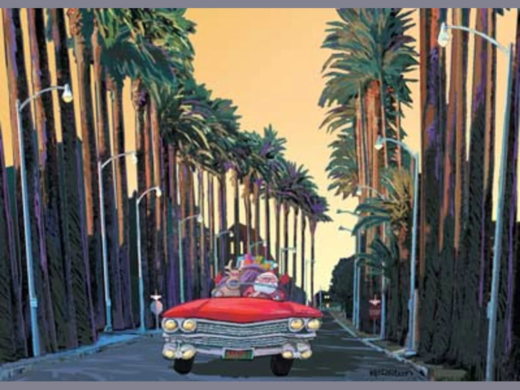 Ключови фрази: Дядо Коледа картичка съвременна кола гора елени еленчета шейна скеч забавна смешна комикс рисувана