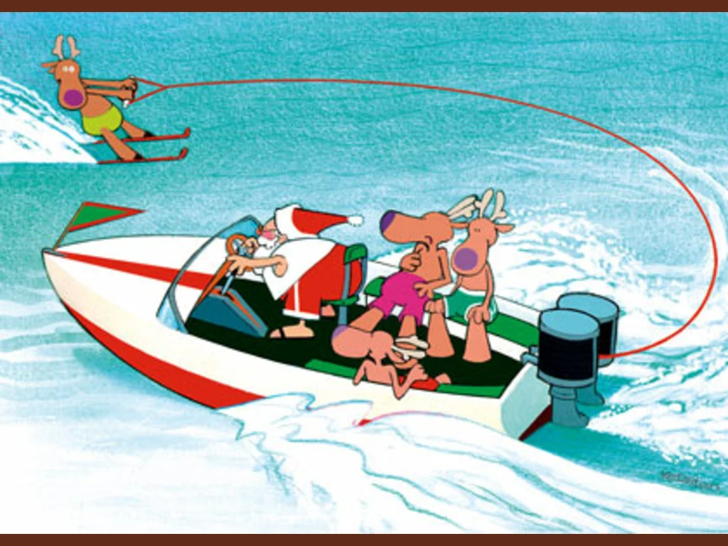 Ключови фрази: Дядо Коледа картичка скутер лодка шоу водни ски елени еленчета шейна скеч забавна смешна комикс рисувана