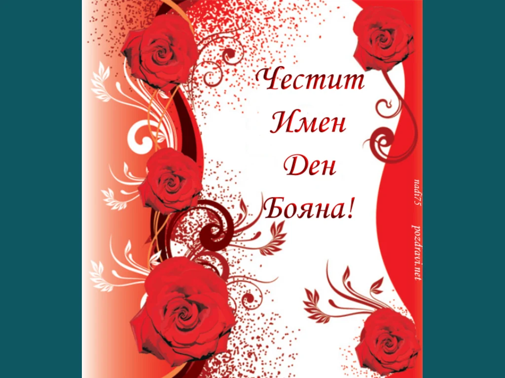 Ключови фрази: Цветна картичка рисувана цветя червени разцъфнали рози поздрави имен ден Бояна пожелание щастливи дни упех любов късмет радост дълъг живот