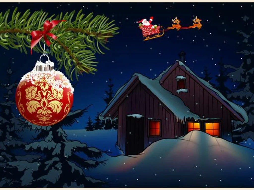 Ключови фрази: Картичка Коледна тиха нощ снежинки дом къщичка светлини празник украса шейна подаръци семеен празник