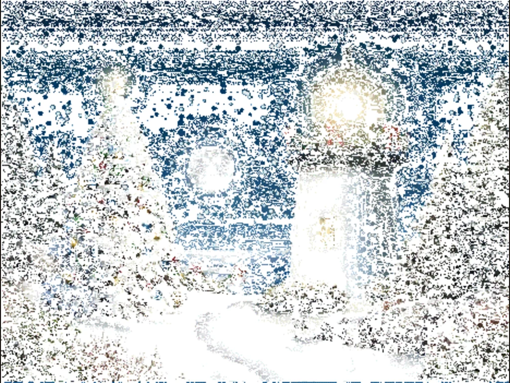 Анимирана коледна картичка. С една вълшебна снежна вечер. Типична за коледната вечер.Честит празник!