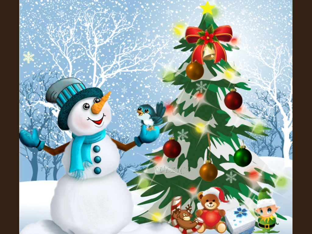 Ключови фрази: Картичка снежко птиче играчки мечета снежинки гора елхичка украса новогодишна панделки поздрави пожелания успешна година