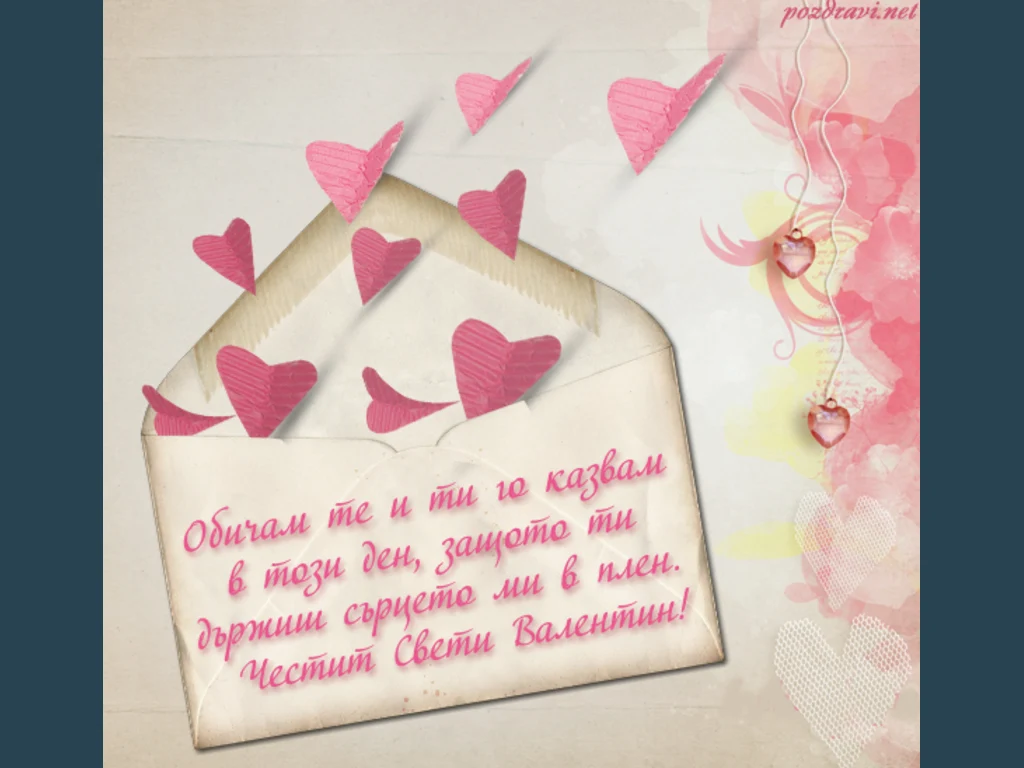Ключови фрази: Честити Свети Валентин картичка пожелание послание любовно розово сърчица поздрави
