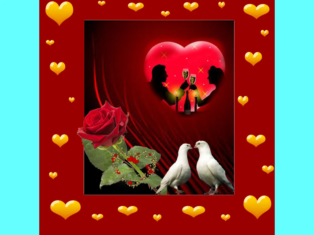Ключови фрази: Картичка романтична интимна любовна вечеря наздравица два бели гълъби сърчица червена алена роза звездички поздрави пожелание здраве обич