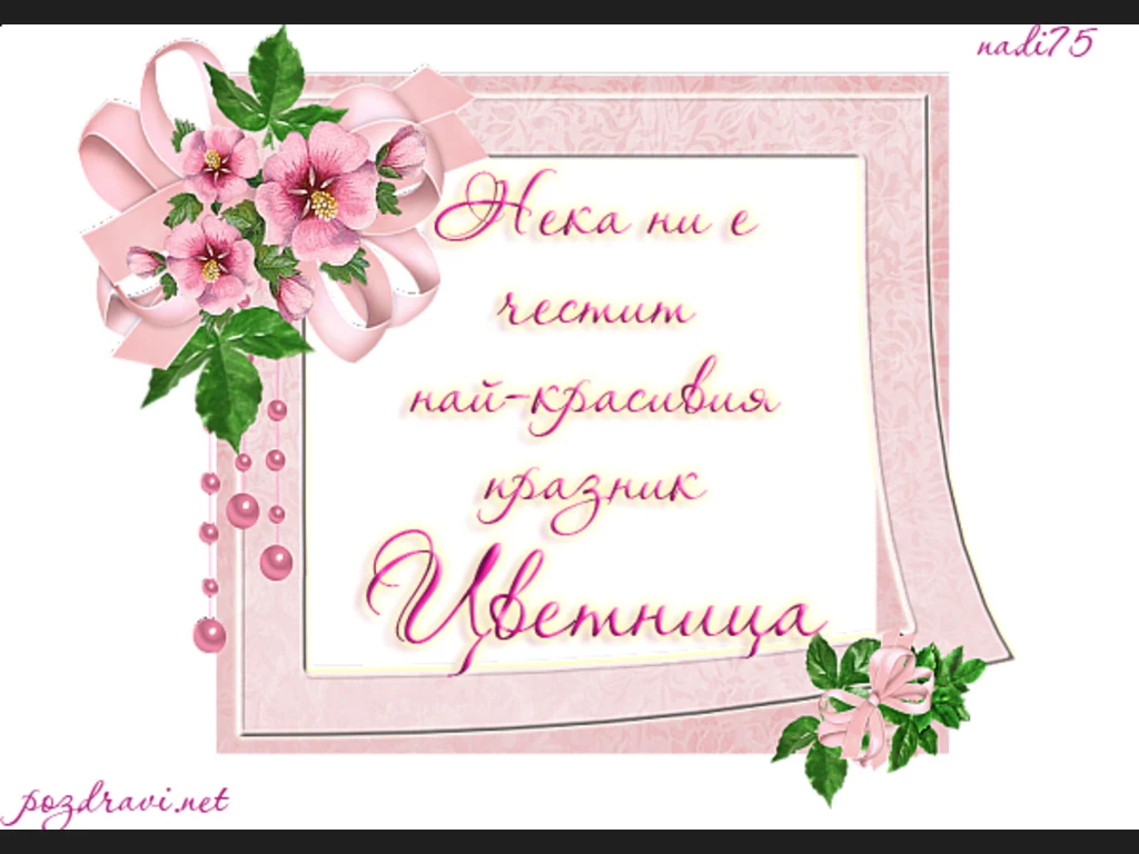 Ключови фрази: Ружа поздрави пожелание празник всички имена носещи цветя Перли семейство весел празник панделки букет цветя клонки зеленина