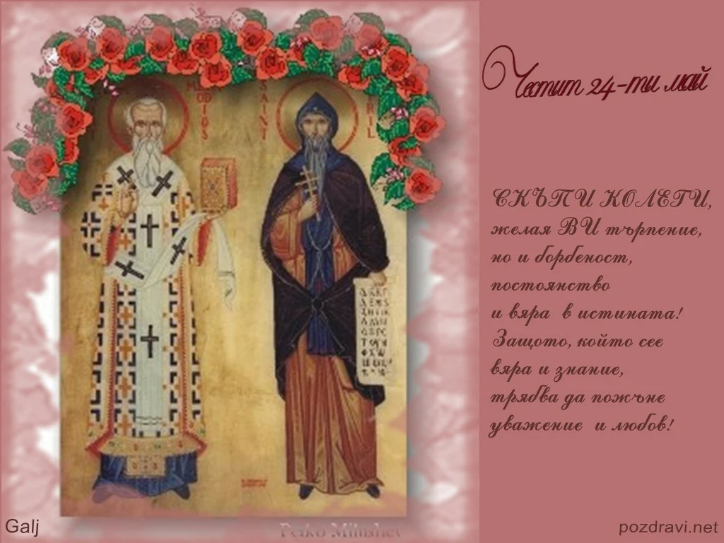 Ключови фрази: пожелание картичка 24 май колеги учители братя Кирил Методи икона светци писменност култура