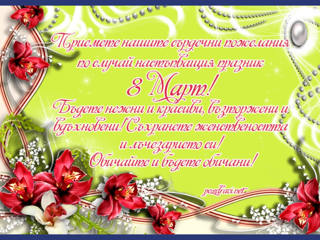 Ключови фрази: осми 8 март картичка пожелание жени дами орхидеи