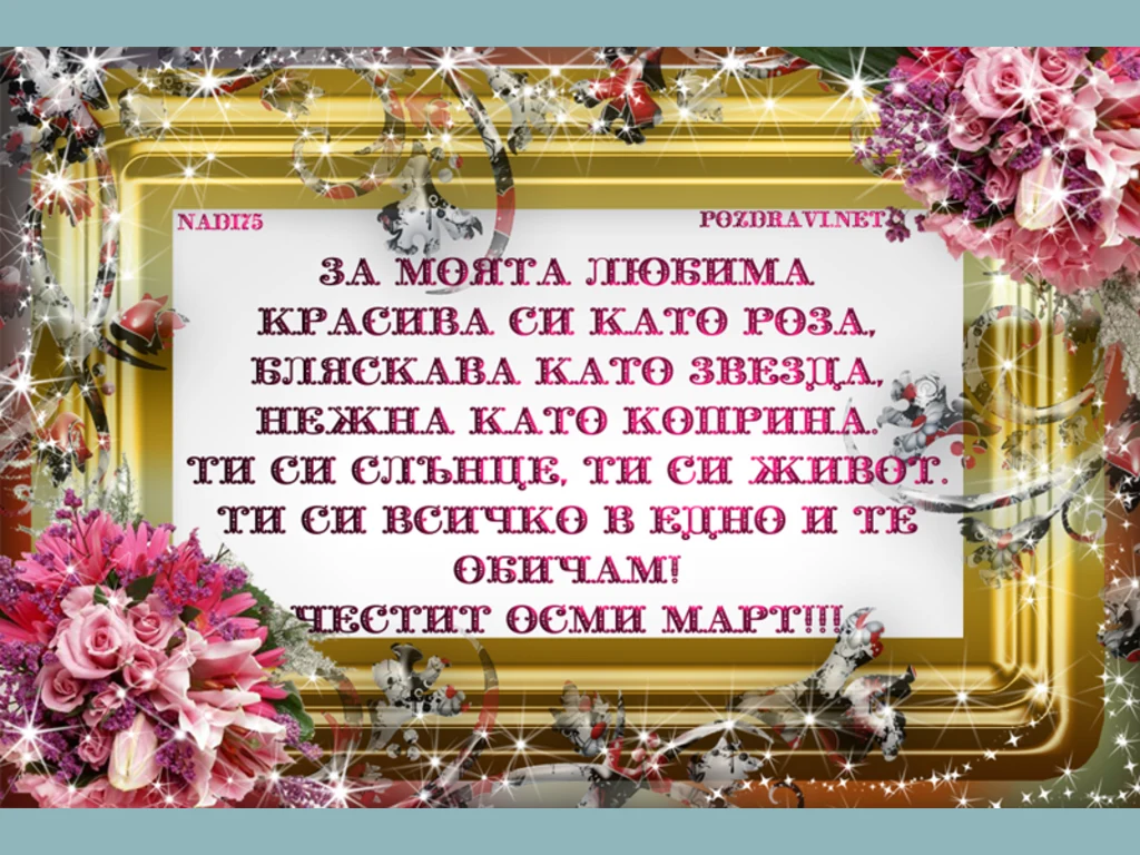Картичка за осми март с любовно признание. Пожелавам на много жени да получават такива картички за празника.