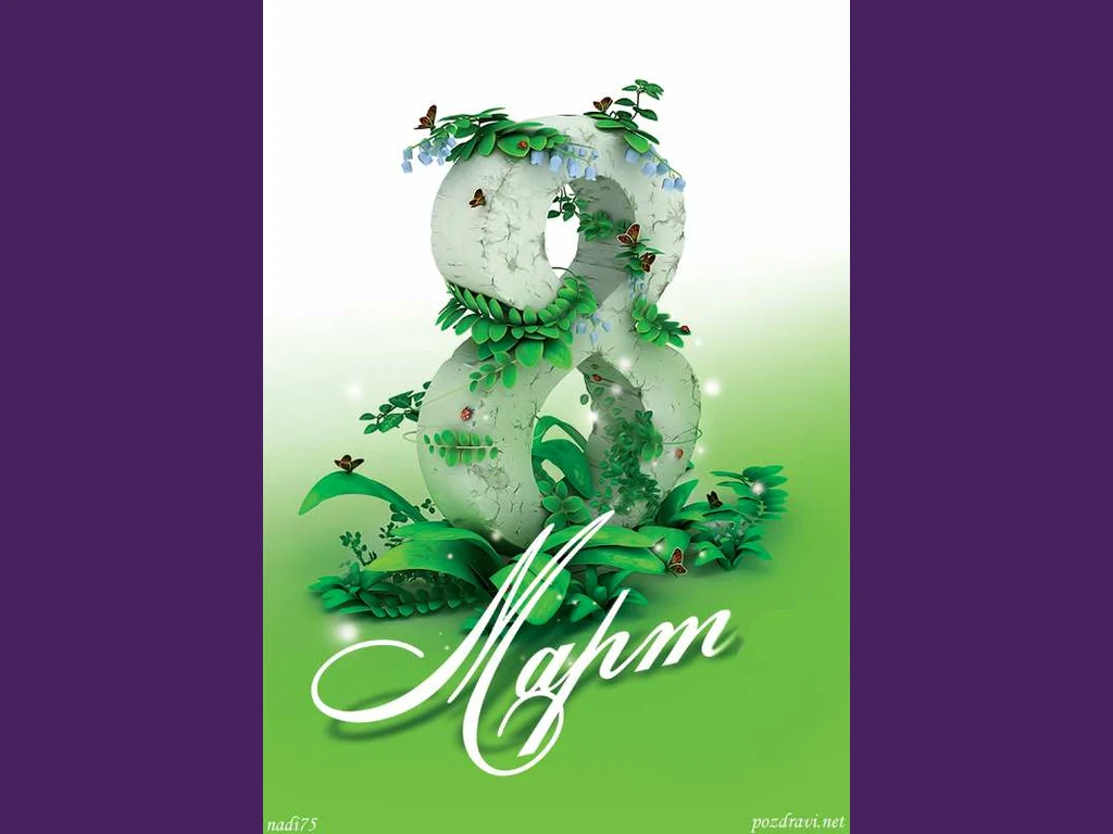 Ключови фрази: Картичка поздрави пожелание празник осми март зеленина пеперуди пролет влюбена красива истинска жена
