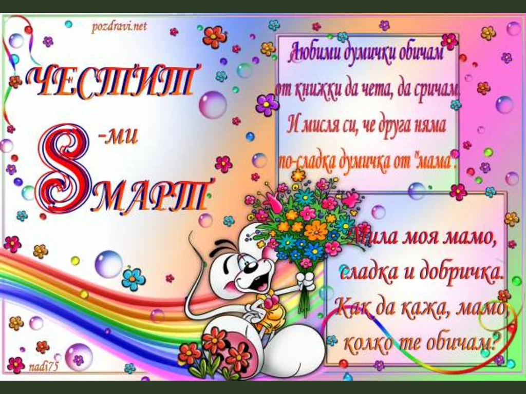 Ключови фрази: Картичка стихче мила мамо сладка добричка мишле букет цветя пъстри перлички поздрави пожелание празник