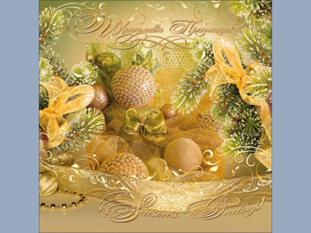 Ключови фрази: Коледна украса панделки играчки борови клонки картичка пожелание поздрави щастливи празници