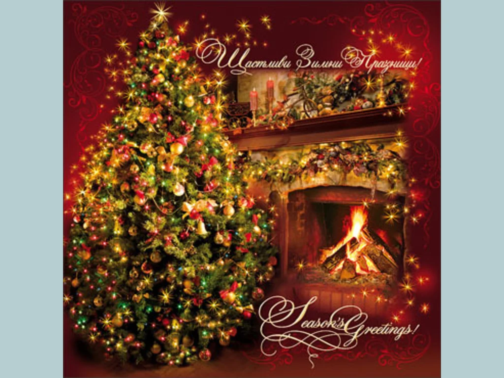 Ключови фрази: Бъдни вечер камината горяща топлина уют софра пълна гозби кравайчета вкусни семейство щастливо посреща сега Коледа празник обичан всички девойка традиционна носия българска коледна елха украсена красива изящна