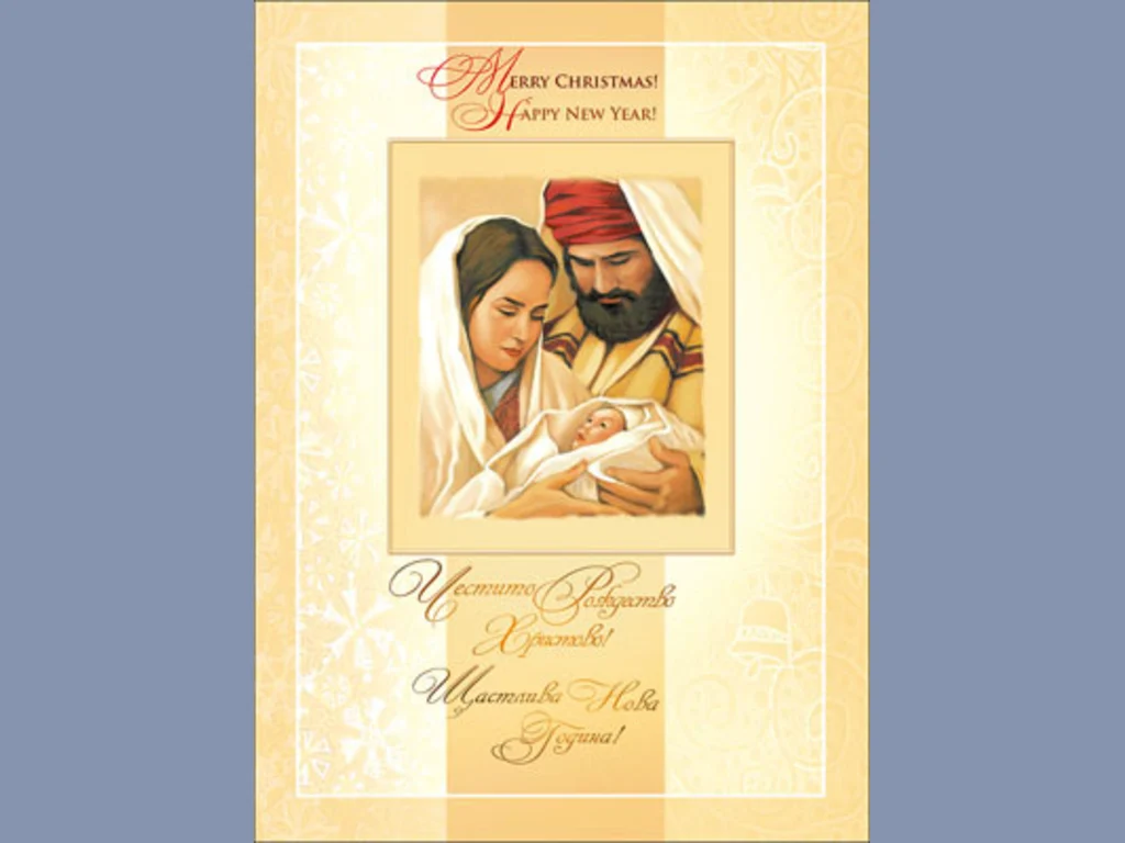 Ключови фрази: Картичка пожелания поздрави честито Рождество Христово младенец дева Мария майка баща Йосив