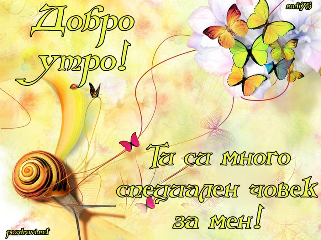 За най-специалния човек Добро Утро Създадена: 2013-08-19 01:26:36 Добро утро.Ти си много специален човек за мен! Ключови фрази: пеперуди балони Оригинална снимка