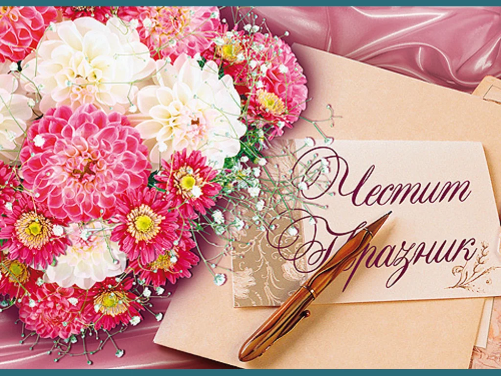 Ключови фрази: Много стилна красива изискана картичка букет пожелание любов поздрави честит празник послание писмо химикалка