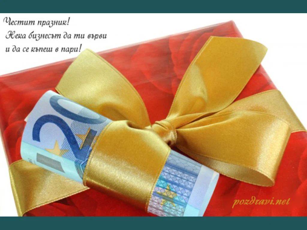 Ключови фрази: Картичка поздрави пожелание бизнес празник пакет панделка банкноти евра