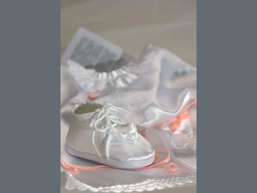 Ключови фрази: Картичка пожелание поздрави първа рожба бели бебешки дрешки буйки розова панделка коприна сатен честито бебче