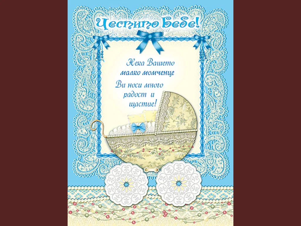 Честито Бебе! Нека Вашето малко момченце Ви носи много радост и щастие!Поздравяваме Ви с това чудесно събитие и нека Вашето бебе да расте здраво и щастливо! За Вас започва нов живот и сега трябва да възпитавате и да се грижите много малкия човек. Пожелаваме Ви да бъде интелигентно и добро дете! И Ви пожелаваме винаги да обича Вас – неговите родители, които винаги ще му дават своята любов и подкрепа!