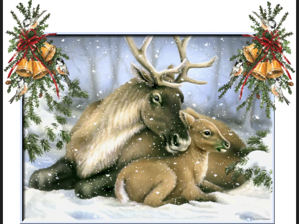 Коледна анимирана картичка -Елен и сърне!
