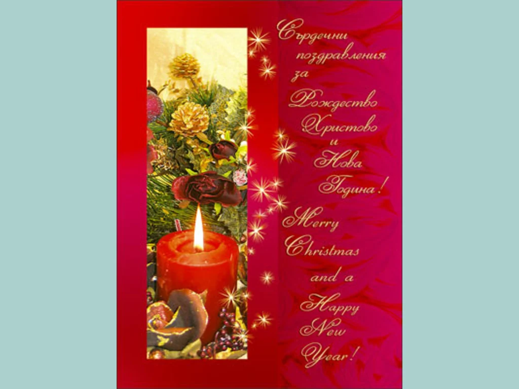 Ключови фрази: Картичка червена свещ пламъче огън любов празнични пожелания Рождество Христово Нова Година весели зимни празници