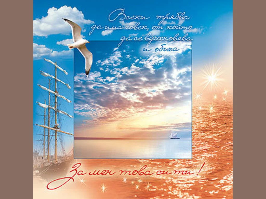 Ключови фрази: Картичка самотен кораб бурно море спокойно небе облачета чайка любов