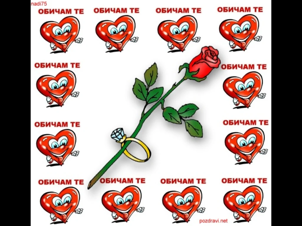 Ключови фрази: Картичка любов секс обич обичам любим гадже агапе много засмени сърчица червена роза годежен пръстен предложение