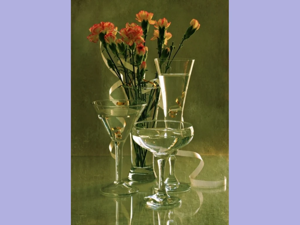 Ключови фрази: Картичка наздравица пълни чаши панделка ваза цветя карамфили дамска компания