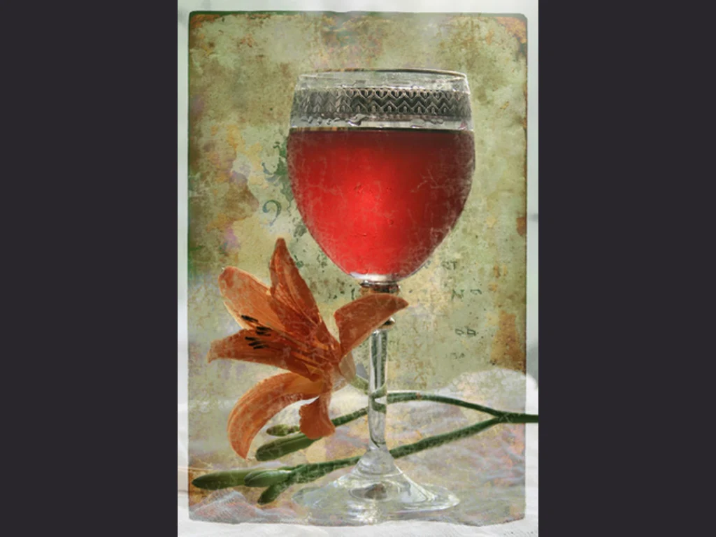 Ключови фрази: Семпла картичка изискана чаша червено отлежало вино цвете наздраве