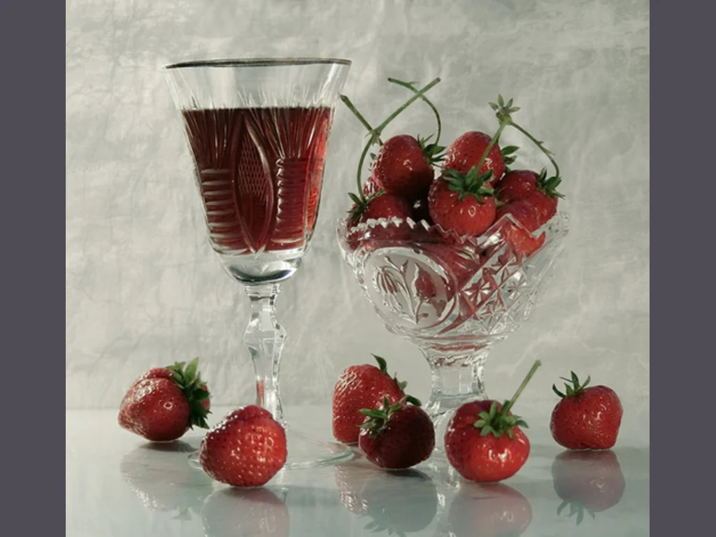 Ключови фрази: Картичка наздравица пожелание здравословен живот кристална купа ягоди чаша наторален сок
