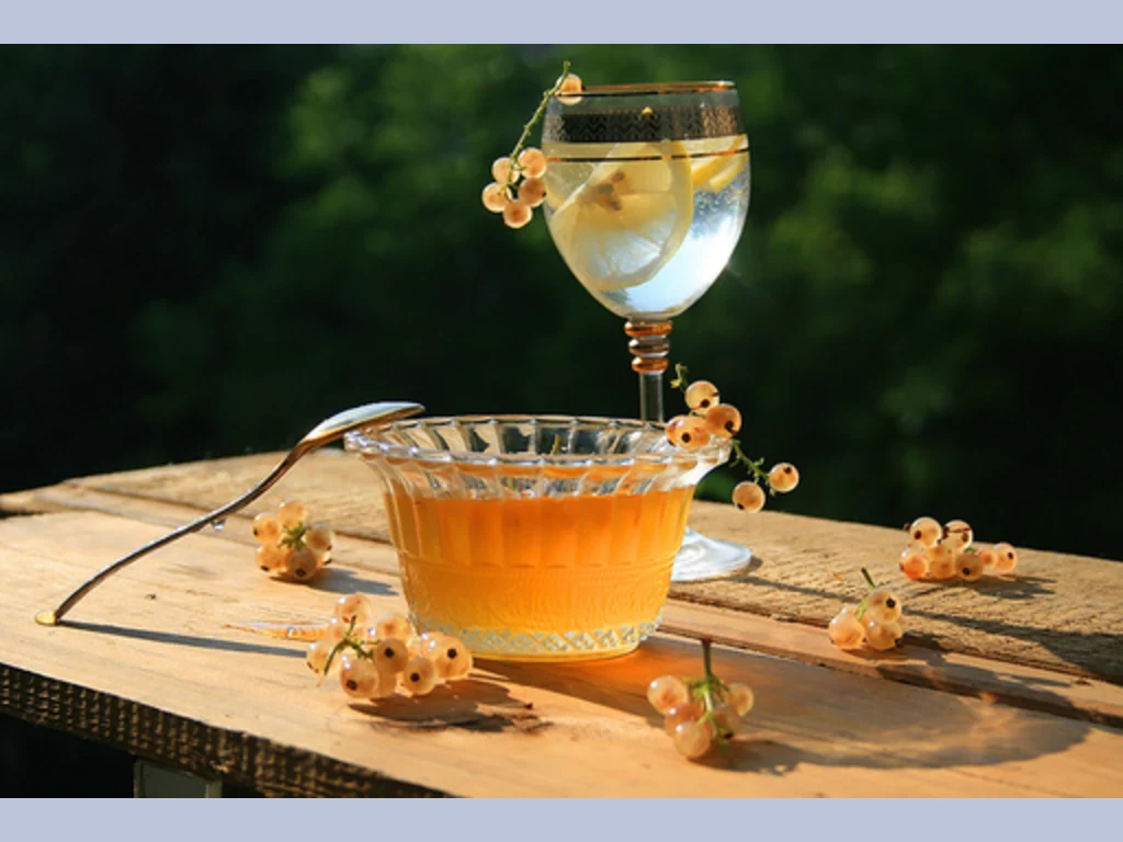 Ключови фрази: Картичка наздравица всички наторални еко производители купичка мед касис чаша бяло вино красота истина природа