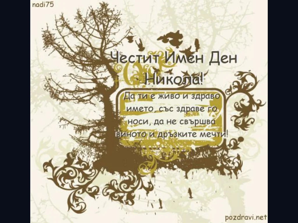 Честит Имен Ден Никола Да ти е живо и здраво името, със здраве го носи, да не свършва виното и дръзките мечти!