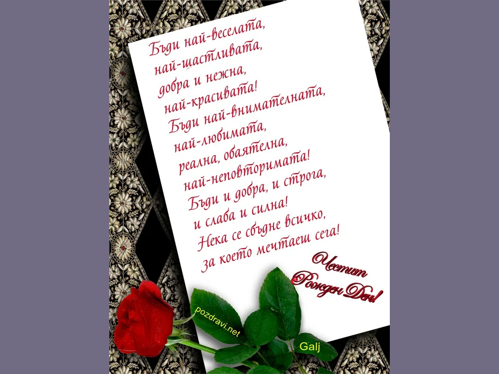 Ключови фрази: Пожелание жена весела щастлива нежна красива обаятелна любима честит рожден ден червена роза