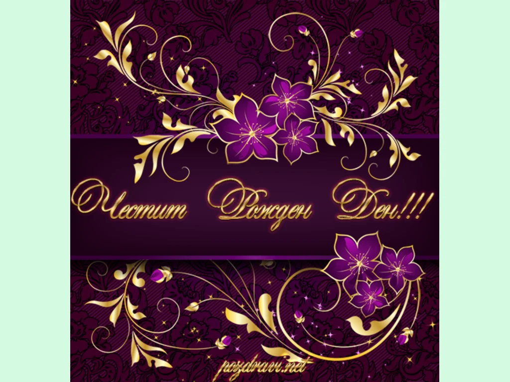 Ключови фрази: злато лилав цветя пожелание рожден дн картичка