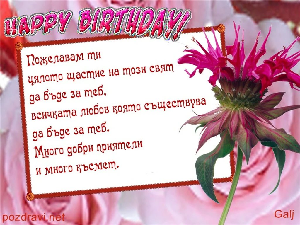 Пожелавам ти цялото щастие на този свят да бъде за теб, всичката любов която съществува да бъде за теб. Много добри приятели и много късмет. Честит рожден ден!