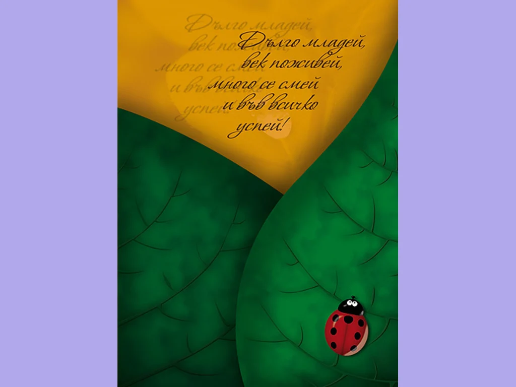 Ключови фрази: Кацнала калинка семейство брак картичка поздрави пожелание рожден ден младост живот смях успех дълголетие