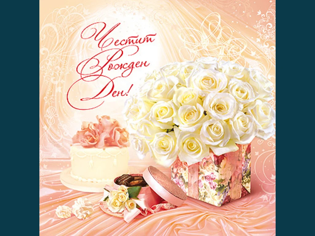 Ключови фрази: Изключително специална нежна красива картичка поздрави рожден ден огромен изискан букет бели рози подарък панделка сатен бонбониера сладкиши торта магическа красота