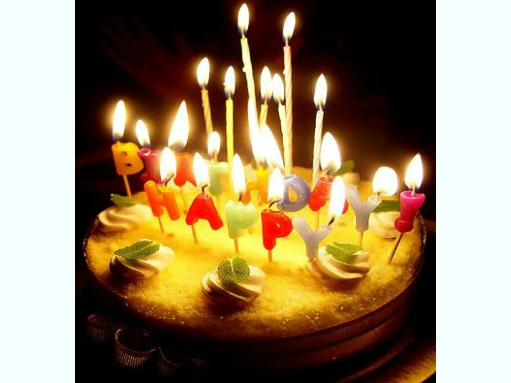 Ключови фрази: Картичка поздрави пожелание торта щастлив рожден ден горящи свещички сбъдване желание