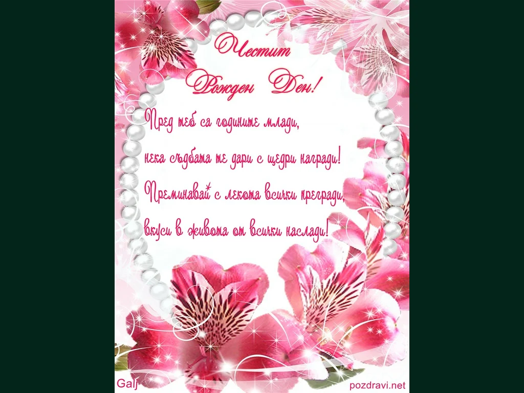 Ключови фрази: Картичка пожелание младост всички наслади награди рожден ден цветя орхидеи перли диаманти нежност розава красота
