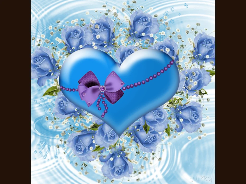 Ключови фрази: Картичка изискана специална желана обичана красива перли сини рози панделка сърце влюбени