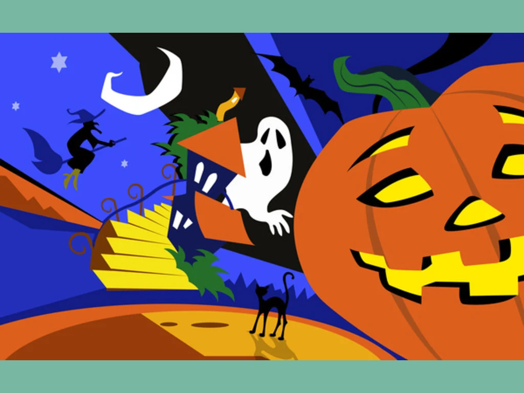 Ключови фрази: Вещица яхнала метла зловеща къща духче черна котка светеща тиква прилепи мистична нощ