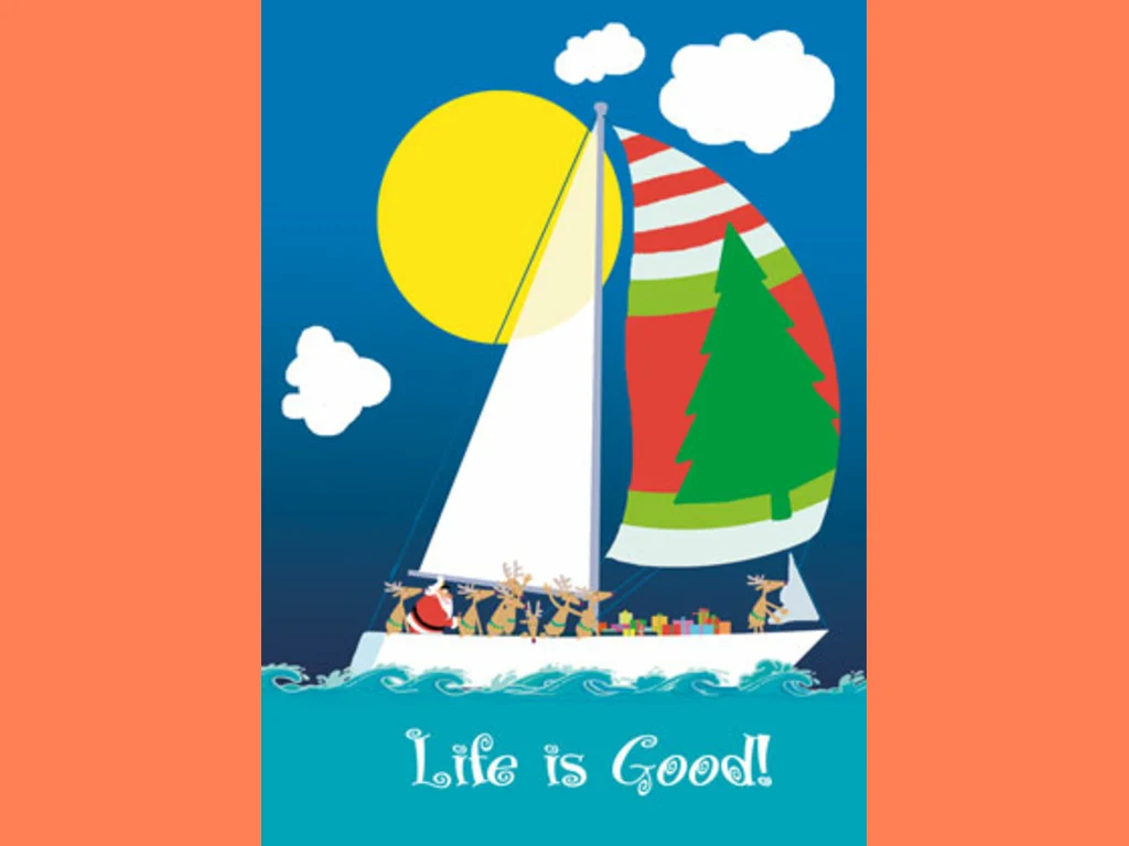 Ключови фрази: Дядо Коледа картичка еленчета шейна скеч забавна смешна комикс рисувана платноходка хубав живот море слънце облаче
